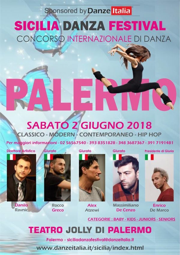 Finalmente sta per arrivare il giorno più atteso, il “SICILIA DANZA FESTIVAL”, concorso di danza Internazionale patrocinato da Danze Italia, che si svolgerà nella bellissima città di Palermo al Teatro Jolly.