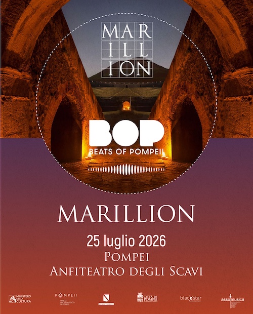 Dopo aver registrato il tutto esaurito per due anni consecutivi con il Marillion Weekend – il festival di due giorni dedicato al prog-rock inglese che si tiene a Padova – i Marillion tornano in Italia e per la prima volta si esibiranno in un evento esclusivo e imperdibile per migliaia di fan: la band che ha segnato la storia del sound progressive rock si esibirà sabato 25 luglio 2026 nel leggendario Anfiteatro degli Scavi di Pompei, nell’ambito della terza edizione di Beats of Pompeii.