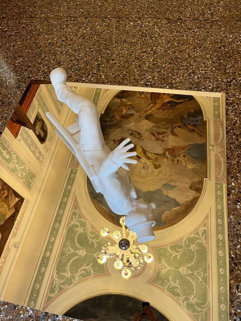 Petrucci si inserisce in questa riflessione con l’opera “La danza dell’Abisso”, che utilizza le figure altamente simboliche del clown e dello specchio. Il clown protagonista della scultura, scelto da Petrucci come emblema ironico e filosofico al tempo stesso, è metafora dell’esistenza umana, come egli stesso afferma: «Nonostante le maschere che possiamo indossare, siamo “ovunque stranieri” di noi stessi nella danza dell’esistenza».Se quella del clown è una figura contraddittoria, che esprime bene le sfaccettature della personalità umana, lo specchio porta il visitatore a riflettere su sé stesso e sulla propria complessa interiorità. Esso rappresenta visivamente la divisione interna all’uomo, tra ciò che mostra al mondo esterno e ciò che si cela. L’opera sarà visibile fino al 24 novembre 2024 presso il Padiglione del Grenada della 60esima edizione dell’Esposizione Internazionale d’Arte – La Biennale di Venezia.