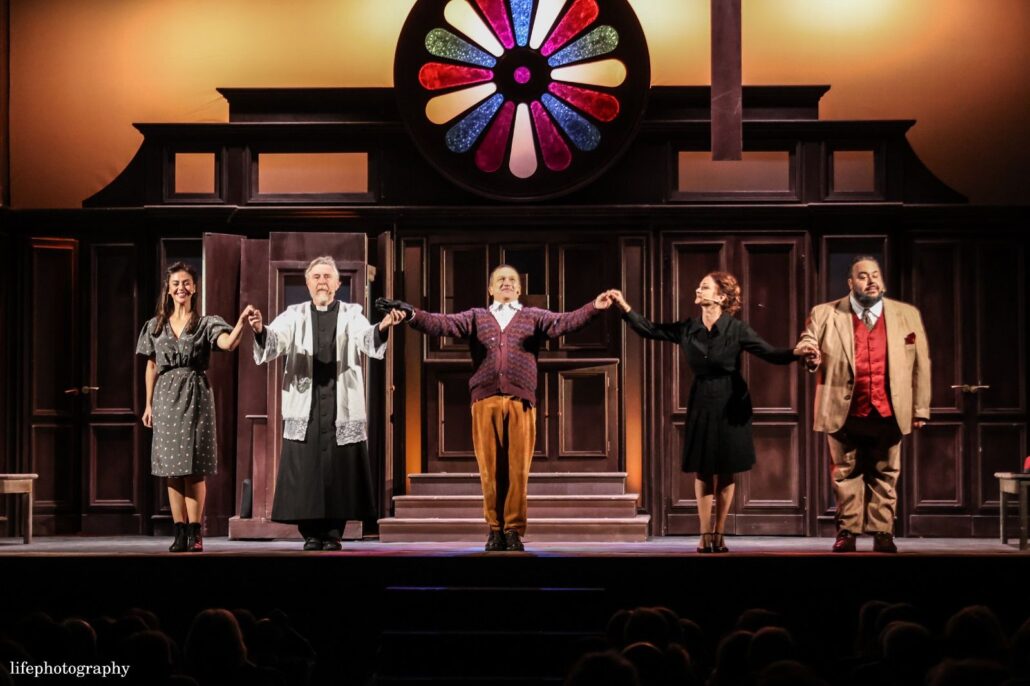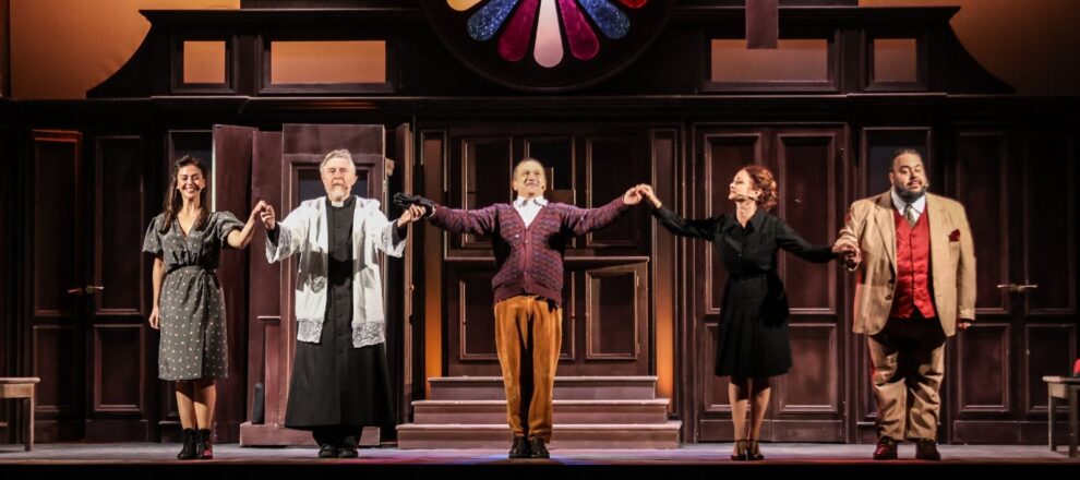 La vitalità della storia è continuamente alimentata dal rapporto, a volte conflittuale, altre volte amorevole, che Don Bruno ha con Vincenzo, il suo sagrestano, non più giovanissimo e menomato (ha una mano di legno che copre con un guanto nero), la cui comicità sfacciata, fa il paio con quella involontaria del parroco che s’immola, con “carità cristiana”, quale vittima sacrificale di situazioni decisamente esilaranti. Tra confessioni sacramentate e non, i due sono testimoni di una complicata vicenda che vede coinvolte Rosa (sposata con un uomo costretto a emigrare all’estero), la sorella zitella Filomena e il farmacista del paese.