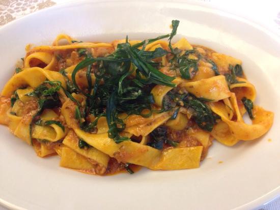 Cuocete per qualche minuto le tagliatelle in acqua salata. Scolatele e conditele con il sugo di stridoli. Infine un filo di olio con del parmigiano e il piatto è pronto.