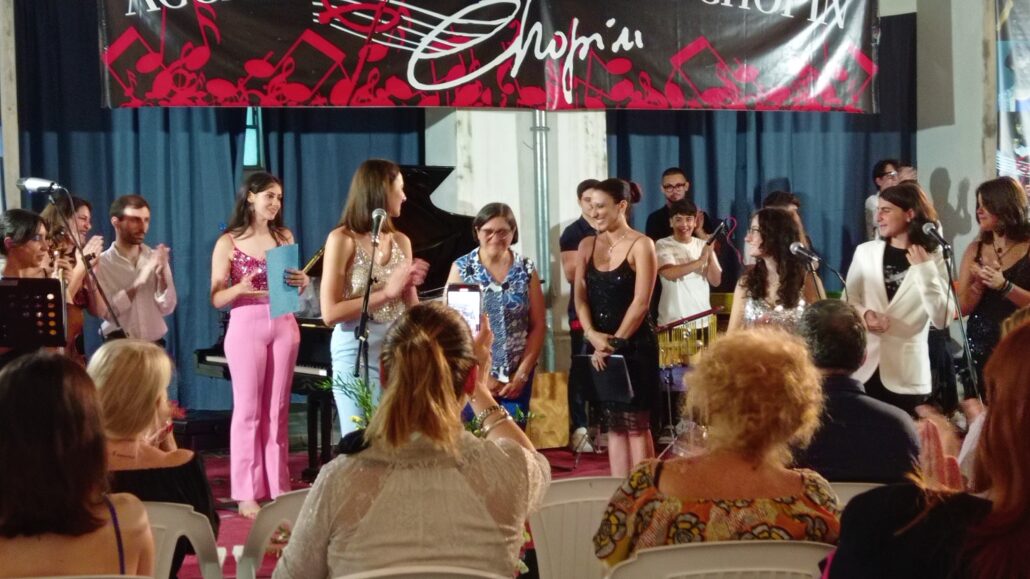 Due serate, quattro raffinati concerti e oltre cento giovani talenti. Un’armonia perfetta. Grande successo e un tripudio di applausi per l’Accademia Musicale Chopin diretta artisticamente dalla strepitosa e talentuosa Paola Petrosino e da un meraviglioso team di maestri del circuito musicale classico e moderno di fama nazionale ed internazionale. Genialità, purezza di suoni, tecnica e passione hanno caratterizzato i raffinati concerti di alto livello artistico e culturale organizzati presso lo storico e suggestivo Chiostro del Convento di S. Antonio a Nocera Inferiore. La mission dell’Accademia, che quest’anno compie diciotto anni, è fornire agli allievi dai 4 anni in poi, la possibilità di scoprire e sviluppare le proprie capacità esprimendo l’arte della musica in tutte le sue forme, sia performative che compositive. A condurre il pubblico in un raffinato, imperdibile ed emozionante viaggio tra le note è stata la giornalista e conduttrice web/televisiva Brigitte Esposito. Nel corso delle serate i fantastici solisti, hanno eseguito, ognuno al proprio strumento, i brani scelti e preparati con cura dai loro eccellenti maestri: M° Paola Petrosino, M° Maria M° Gabriella Ricci, M° Carmela De Prisco, M° Ida Della Rocca, M° Aniello Chierchia Vaccaro, M° Francesca Ranieri, M° Luca Gaeta, M° e soprano internazionale Anna Corvino, M° Antonio De Cola, M° Alfonso Falcone, M° Massimo Barretta. Non è mancata la Musica d’Insieme che ha fatto accrescere negli allievi la voglia di cantare e suonare con gli altri, arricchirsi a vicenda, relazionarsi ed aver rispetto di chi suona o canta al proprio fianco. I lunghi applausi sono stati la certezza che questa nuova ondata di giovani talenti sarà il futuro della grande musica italiana.