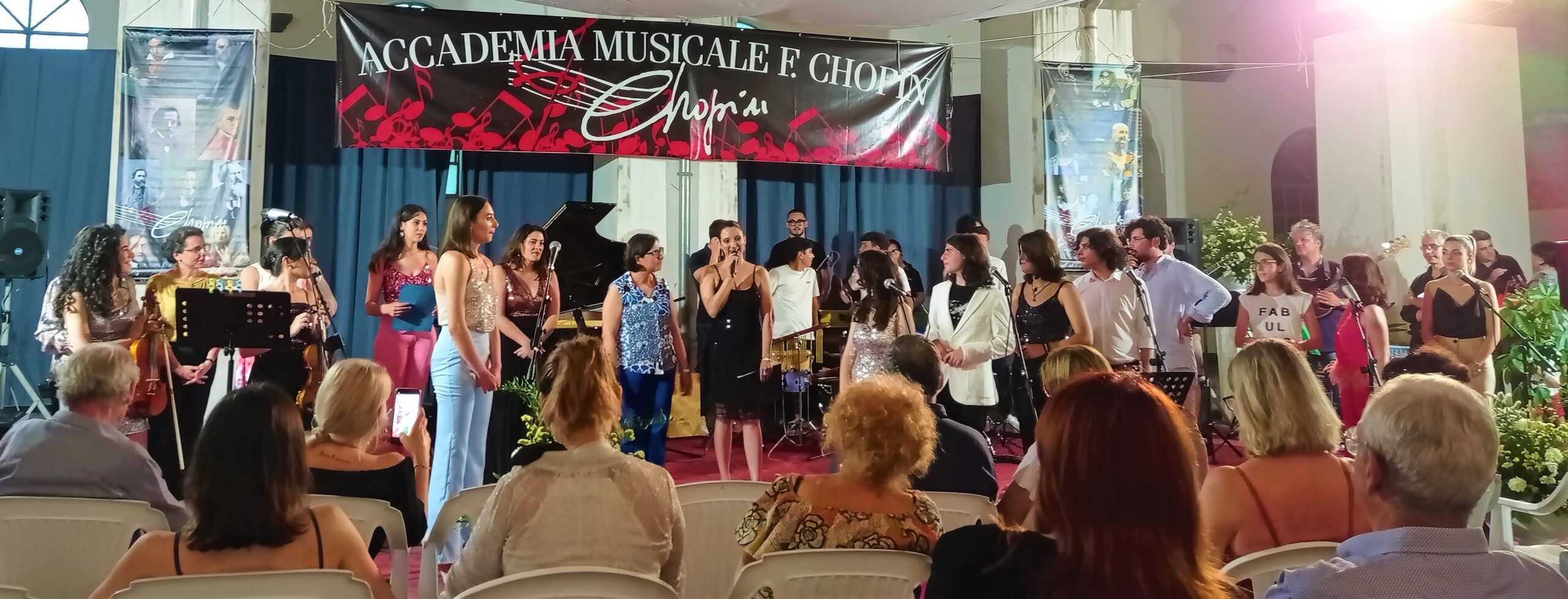 Due serate, quattro raffinati concerti e oltre cento giovani talenti. Un’armonia perfetta. Grande successo e un tripudio di applausi per l’Accademia Musicale Chopin diretta artisticamente dalla strepitosa e talentuosa Paola Petrosino e da un meraviglioso team di maestri del circuito musicale classico e moderno di fama nazionale ed internazionale. Genialità, purezza di suoni, tecnica e passione hanno caratterizzato i raffinati concerti di alto livello artistico e culturale organizzati presso lo storico e suggestivo Chiostro del Convento di S. Antonio a Nocera Inferiore. La mission dell’Accademia, che quest’anno compie diciotto anni, è fornire agli allievi dai 4 anni in poi, la possibilità di scoprire e sviluppare le proprie capacità esprimendo l’arte della musica in tutte le sue forme, sia performative che compositive. A condurre il pubblico in un raffinato, imperdibile ed emozionante viaggio tra le note è stata la giornalista e conduttrice web/televisiva Brigitte Esposito. Nel corso delle serate i fantastici solisti, hanno eseguito, ognuno al proprio strumento, i brani scelti e preparati con cura dai loro eccellenti maestri: M° Paola Petrosino, M° Maria M° Gabriella Ricci, M° Carmela De Prisco, M° Ida Della Rocca, M° Aniello Chierchia Vaccaro, M° Francesca Ranieri, M° Luca Gaeta, M° e soprano internazionale Anna Corvino, M° Antonio De Cola, M° Alfonso Falcone, M° Massimo Barretta. Non è mancata la Musica d’Insieme che ha fatto accrescere negli allievi la voglia di cantare e suonare con gli altri, arricchirsi a vicenda, relazionarsi ed aver rispetto di chi suona o canta al proprio fianco. I lunghi applausi sono stati la certezza che questa nuova ondata di giovani talenti sarà il futuro della grande musica italiana.