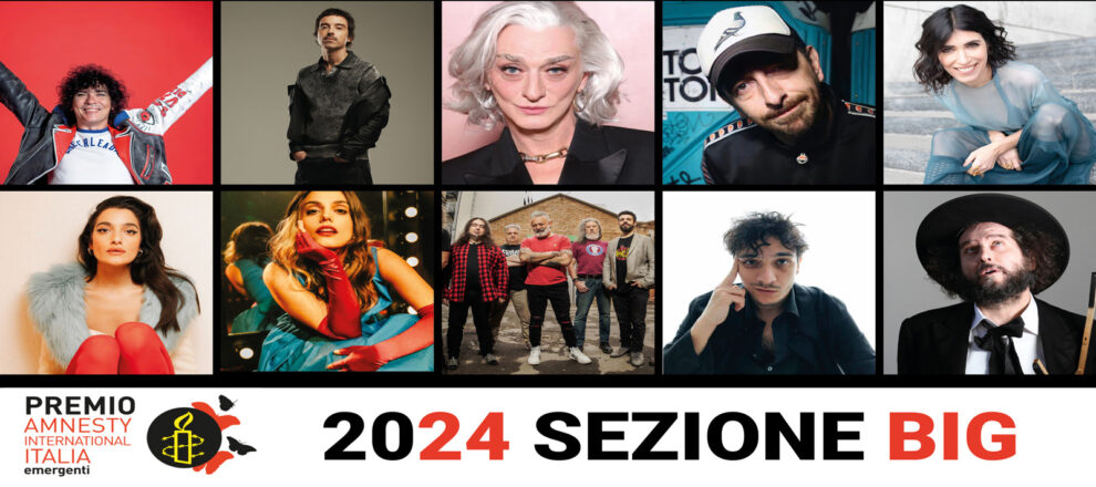 Appino “È solo una bomba” (Appino / Pagni / Appino) Vinicio Capossela “La crociata dei bambini” (Capossela / Brecht / Capossela) Diodato “La mia terra” (Diodato) Drusilla Foer “Tanatosi” (Ilacqua) Giancane “Sei in un paese meraviglioso” (Barbati Bonanni / Smordoni / Barbati Bonanni) Giorgia “Senza confine” (Todrani / Toffoli / Faini / Fracchiolla / Casagrande / Dagani / Toffoli) Levante “Capitale mio capitale” (Filippelli / Lagona / Bestonzo) Modena City Ramblers “Mediterranea” (Modena City Ramblers) Tananai “Tango” (Cotta Ramusino / Paolo Antonacci / Simonetta / Raina) Margherita Vicario “Magia” (Vicario / Andrea Bonomo / Pavanello / Roberts). Lo storico riconoscimento viene assegnato a brani di artisti italiani noti, che, nell’anno precedente, si sono contraddistinti per tematiche legate ai diritti umani. Il premio, indicato da una giuria di esperti, sarà conferito durante la 27a edizione del festival “Voci per la Libertà – Una canzone per Amnesty”, che unisce musica, arte e diritti umani e che si terrà a Rovigo dal 19 al 21 luglio. Nelle precedenti edizioni hanno vinto il Premio Amnesty, sezione Big: “Il mio nemico” di Daniele Silvestri (2003);“Pane e coraggio” di Ivano Fossati (2004); “Ebano” dei Modena City Ramblers (2005); “Rwanda” di Paola Turci (2006); “Occhiali Rotti” di Samuele Bersani (2007); “Canenero” dei Subsonica (2008); “Lettere di soldati” di Vinicio Capossela (2009); “Mio zio” di Carmen Consoli (2010); “Genova Brucia” di Simone Cristicchi (2011); “Non è un film” di Frankie Hi-Nrg MC e Fiorella Mannoia (2012); “Gerardo nuvola ‘e Povere” di Enzo Avitabile e Francesco Guccini (2013); “Atto di forza” di Francesco e Max Gazzè (2014); “Scendi giù” di Alessandro Mannarino (2015); “Pronti a salpare” di Edoardo Bennato (2016); “Ballata triste” di Nada (2017); “L’uomo nero” di Brunori Sas (2018); “Salvagente” di Roy Paci & Aretuska feat. Willie Peyote (2019); “Io sono l’altro” di Niccolò Fabi (2020); “Dalle mie parti” dei Negramaro (2021); nuovamente Carmen Consoli con “L’uomo nero” (2022); “Severodonetsk” di Manuel Agnelli (2023). Le iscrizioni al Premio Amnesty, sezione Emergenti, rimangono invece aperte fino all’8 aprile. Il concorso è rivolto a cantautori, cantautrici e band con un brano sui diritti umani, cantato in qualsiasi lingua o dialetto e di qualsiasi genere musicale.