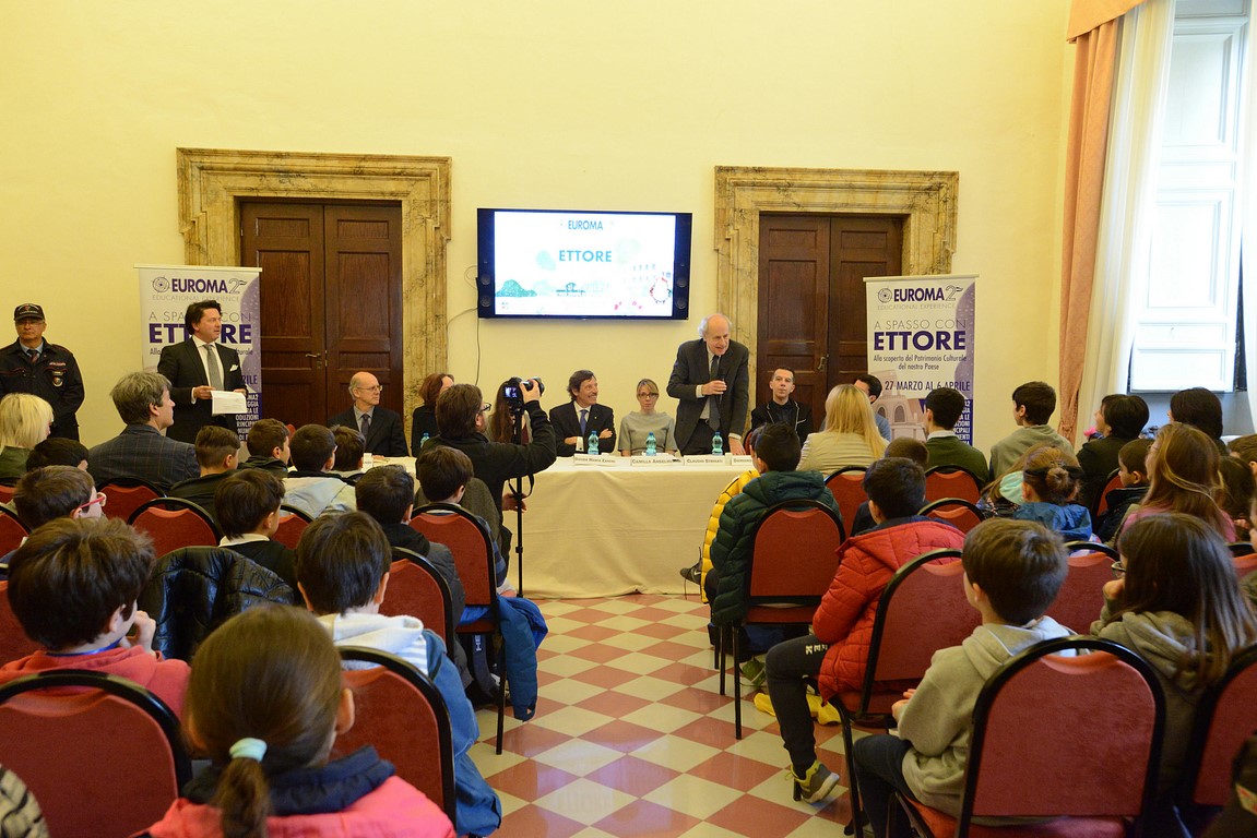 Si è tenuta nella Sala Apollo del Palazzo del Vicariato Vecchio, la Conferenza Stampa dell’iniziativa “A spasso con Ettore, alla scoperta del Patrimonio Artistico del nostro Paese”. Tante le emozioni per gli 80 bambini, una rappresentanza dei circa 6000 giovanissimi delle scuole primarie di Roma, che nei prossimi giorni giungeranno a Euroma2 per visitare il percorso artistico ricostruito negli spazi del Centro. Dal 27 Marzo al 6 Aprile si terrà, infatti, presso Euroma2 l’iniziativa dedicata ai bambini della Scuola Primaria e finalizzata a far conoscere le inestimabili ricchezze dell’arte e della storia italiana. Il progetto è ispirato dalla collana di libri illustrata da Valentina Fontana, ideata e scritta dalla storica dell’arte Camilla Anselmi (Scalpendi Editore). Al tavolo dei Relatori della Conferenza, insieme all’autrice Camilla Anselmi e all’illustratrice Valentina Fontana, sono intervenuti Davide Maria Zanchi, Presidente Euroma2, Stefano Sancandi, Coordinatore Rete territoriale delle Scuole dell’VIII-IX Municipio, Nicoletta Latteri, Presidente Commissione Cultura VIII Municipio, il Prof. Strinati, storico dell’arte, Damiano Laterza, giornalista e critico d’arte. L’incontro ha visto la straordinaria partecipazione di un volto tv molto amato dai giovani, Giovanni Muciaccia, storico conduttore di Art Attack. L’evento ha ricevuto il patrocinio della Regione Lazio e della Presidenza dell’Assemblea Capitolina per l’importanza di un progetto volto alla valorizzazione dei siti archeologici verso le nuove generazioni. L’evento è il primo di una serie di tappe itineranti, sarà pertanto riproposto in altre città italiane e si ripeterà ad ogni nuova pubblicazione della collana. “Ettore, il riccio viaggiatore. Un’avventura a Roma” sarà dunque il primo testo della Collana, a cui seguiranno altre pubblicazioni dedicate a Venezia, Milano, Firenze, Napoli ed altre città italiane, di cui il simpatico riccio sarà il protagonista itinerante, che racconterà ai giovanissimi lettori la storia dell’arte e dei monumenti delle città che visiterà. Saranno realizzati per l’occasione, all’interno di Euroma2, allestimenti scenografici, ciascuno dei quali rappresenterà, in miniatura, uno dei luoghi tappa del viaggio di Ettore a Roma: il Colosseo, l’Arco di Costantino, Castel Sant’Angelo, il Pincio, la Fontana di Trevi e altri importanti monumenti citati nel libro. I bambini potranno assistere a brevi lezioni di storia dell’arte, tenute dagli studenti dell’Istituto Superiore Confalonieri De Chirico di Roma che narreranno loro la storia di ogni monumento rappresentato nel libro. Alla conclusione del percorso i bambini, circa5.300, appartenenti a Scuole pubbliche e private dei Municipi VIII, IX e X della Capitale, riceveranno in regalo il libro di “Ettore”, destinato a diventare un protagonista della letteratura per ragazzi e un importante strumento didattico per sensibilizzare ed educare le nuove generazioni alla conoscenza e al rispetto del patrimonio culturale delle città italiane. Il progetto sarà riproposto ad ogni pubblicazione della collana e avrà lo scopo di fornire ai giovani un bagaglio di conoscenze tale da renderli, un giorno, cittadini dotti e consapevoli sul ruolo primario che l’Italia ha ricoperto nella storia e nella cultura e che, ancora oggi, la rende grande agli occhi del mondo. L’autrice, già nota nell’ambito della letteratura per l’infanzia per essere stata, nel 2012, co-autrice del testo “Raccontami il Duomo. Storie del Duomo di Milano”, nato dall’esperienza maturata in anni di attività come co-responsabile dei Servizi Educativi del Museo del Duomo, ha pensato di avvicinare all’arte i più piccoli servendosi del racconto ludico prendendo spunto dalle loro domande più frequenti e curiosità principali, dal loro approccio ricco di spunti e prospettive inedite. Al protagonista, infatti, il piccolo riccio Ettore, è affidato un compito fondamentale: educare al patrimonio le future generazioni. Un particolare ringraziamento è stato rivolto per l’ospitalità all’Opera Romana Pellegrinaggi, nella persona di Mons. Liberio Andreatta, con la quale Euroma2 collabora da tempo sviluppando significative sinergie.